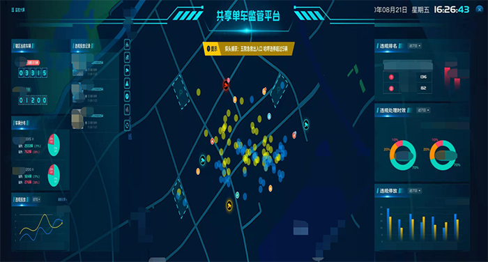 將預(yù)警事件信息上報至海康綜合安防管理平臺,再傳達至井幫共享(電)單車數(shù)字監(jiān)管平臺,城市管理部門可在監(jiān)管平臺直觀查看相關(guān)數(shù)據(jù);