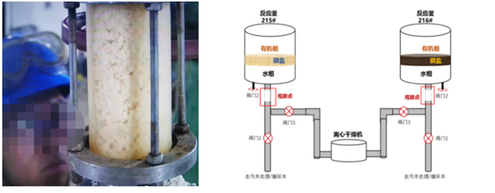 化工分離分液過程持續(xù)約半小時(shí),工人在此期間不可離開操作崗位,全程僅用肉眼在分液柱觀察點(diǎn)觀察鹽類沉淀情況,來判斷閥門開關(guān)操作。